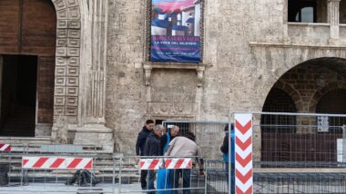 Ascoli, prosegue il montaggio della gru in piazza del Popolo. Quintana, alcuni eventi nel “salotto cittadino”