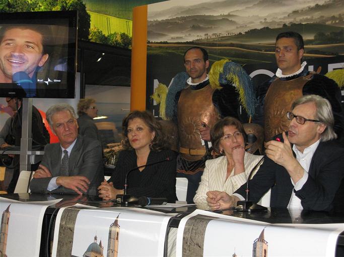 Nel pomeriggio, di fronte ad un entusiasta Vittorio Sgarbi, presenti il presidente Celani, l’assessore regionale Serenella Moroder, l’assessore al Turismo della Provincia di Fermo Guglielmo Massucci e l’assessore Petrucci, la cabarettista Debora Mancini, conosciuta al grande pubblico di Zelig, ha deliziato i visitatori con un fantasioso monologo alla scoperta di luoghi, personaggi, storie dei 33 comuni del Piceno, terminato con l’intramontabile canzone “Ascoli bella” di Cagnucci. Quindi, si è svolta la degustazione delle prelibatezze picene: olive ascolane, formaggi locali, vini, funghetti di Offida e Anisetta Meletti, imbandite su una collezione di ceramiche fornite dal Centro di Formazione Professionale di Ascoli Piceno. A conclusione dell’intensa giornata, Vittorio Sgarbi e il direttore della Pinacoteca di Ascoli Stefano Papetti hanno illustrato capolavori dell’arte e della cultura pieni e marchigiani.