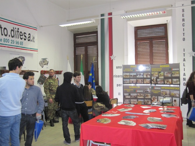 Ci avviciniamo agli stand espositivi, e tra la folla riusciamo a distinguere quelli che sono i must del momento: tanti i ragazzi interessati alla carriera militare. “Lo vedo come uno sbocco lavorativo per il futuro – dichiara Marco M., 19 anni di Rotella, iscritto al V anno dell’istituto tecnico per geometri Umberto I – anche se è difficle riuscire ad entrare come effettivo, ma è una delle poche possibilità che si hanno in Italia oggi di trovare un lavoro sicuro”. Chiediamo allora a Marco, se gli attuali fatti di cronaca relativi agli incidenti in Afghanistan non lo spaventino: “purtoppo se fai questo lavoro è un rischio che devi correre, tutti i lavori hanno i loro pro e contro, certo che lasciare amici e parenti per tanto tempo (e la fidanzatina, ci confida a quattro occhi) per un ragazzo giovane è dura, ma è un sacrificio per costruirsi un futuro”.