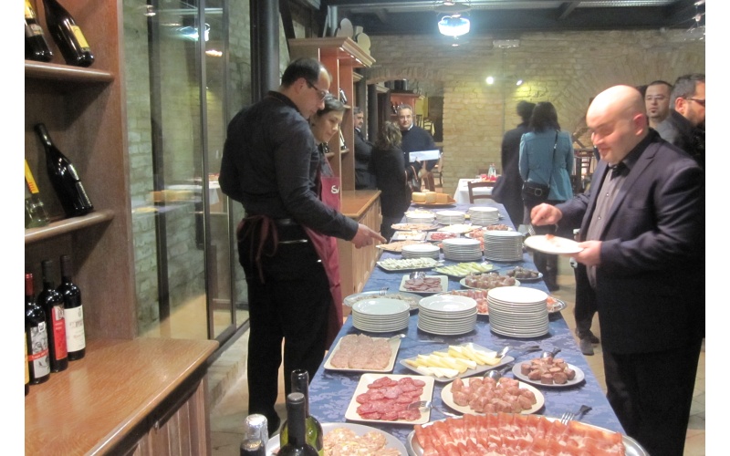 “Vini locali del Piceno e nazionali- ci spiega Mecozzi- saranno accompagnati da una selezione standard di tipicità offidane. Ai clienti verrà consegnato anche un menu con gli extra. In lista salumi e formaggi biologici del Piceno, poi il prosciutto gran riserva dei Colli Pesaresi e una serie di formaggi nazionali solitamente introvabili come il “blu di capra piemontese”.
