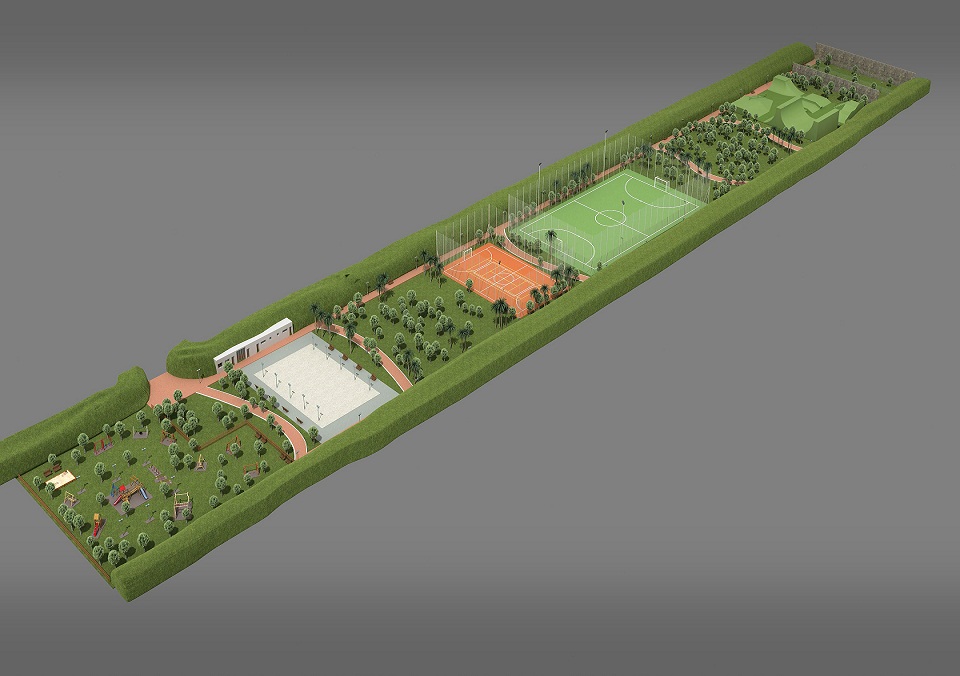 L’ipotesi progettuale, per un costo complessivo di 500.000 euro (€ 250mila da fondi ministeriali e gli altri da mutuo) prevede anche una cura particolare per il verde che manterrà una preponderanza nel complesso del parco mentre a supporto delle istallazioni è previsto anche uno spazio dedicato ad un circolo ricreativo , deposito attrezzi e spogliatoi con servizi.