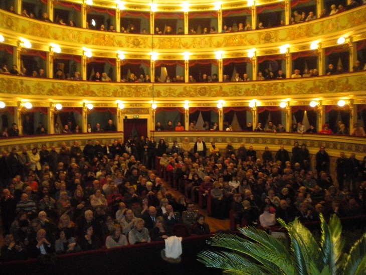 La città tutta ha partecipato calorosamente affollando il teatro. Quasi tutto esaurito.L’appuntamento con la storia parte purtroppo con 45 minuti di ritardo, un po’ all’ascolana.Qualche rimprovero viene dalla platea. Poi solo cose belle e interessanti.