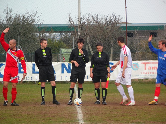 Spinetoli-Primo tempo che inizia subito con il botto, infatti al 1′ è Di Lorenzo che di destro dopo aver saltato Cetraro, parso in pessima condizione, trafigge con una conclusione potentissima l’incolpevole Cionfrini.