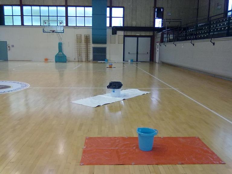 ASCOLI PICENO – Dopo la candidatura di Ascoli a Città europea dello Sport 2014, arrivano anche le polemiche per lo stato di manutenzione di alcune palestre cittadine, una su tutte il PalaBasket di via Spalvieri, ex Polivalente. Francesco Petrelli dell’Udc, con una nota pubblicata su Facebook, mostra la foto di un secchio sistemato nel parquet per raccogliere l’acqua piovana che filtra dal tetto.