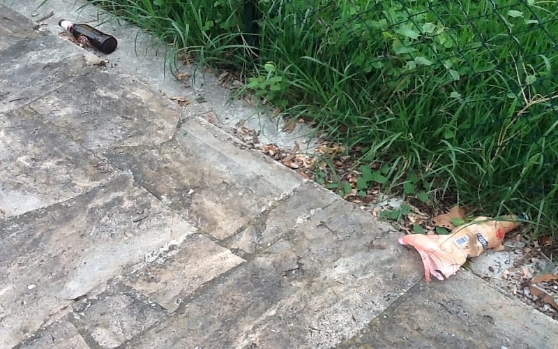 Questa storia ha dell’incredibile se si considera che nella scuola del centro, situata fra il quartiere Piazzarola e il lungo Castellano, la situazione di emergenza esiste da almeno 20 anni. Generazioni di allievi non hanno potuto usare quel giardino infestato da tossicodipendenti e ragazzi sbandati, che di giorno entrano indisturbati dal cancello arrugginito, mentre di notte lo scavalcano salendo sul citofono. I visitatori hanno anche un altro ingresso a disposizione: scavalcando il cancello della scuola elementare e raggiungendo il retro dell’edificio, saltano la recinzione alta mezzo metro, posta dall’amministrazione Castelli a protezione del giardino.Vetri