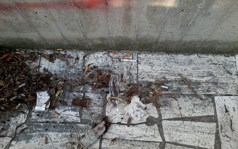 Quello che la materna San Domenico ha oggi al posto del cortile è uno squallido ritrovo a cielo aperto per sbandati. Ogni volta che vengono rinvenute siringhe, lacci emostatici e residui simili, le maestre informano l’Ufficio Servizi Sociali del comune, che interviene a prelevare e gettare gli sgradevoli reperti. Nulla più. A raccogliere i vetri rotti, i bicchieri, tappi di bottiglie ci pensano le maestre oppure il personale di servizio. Farsi male è molto facile, quindi l’accesso al cortile è vietato ai bambini.
