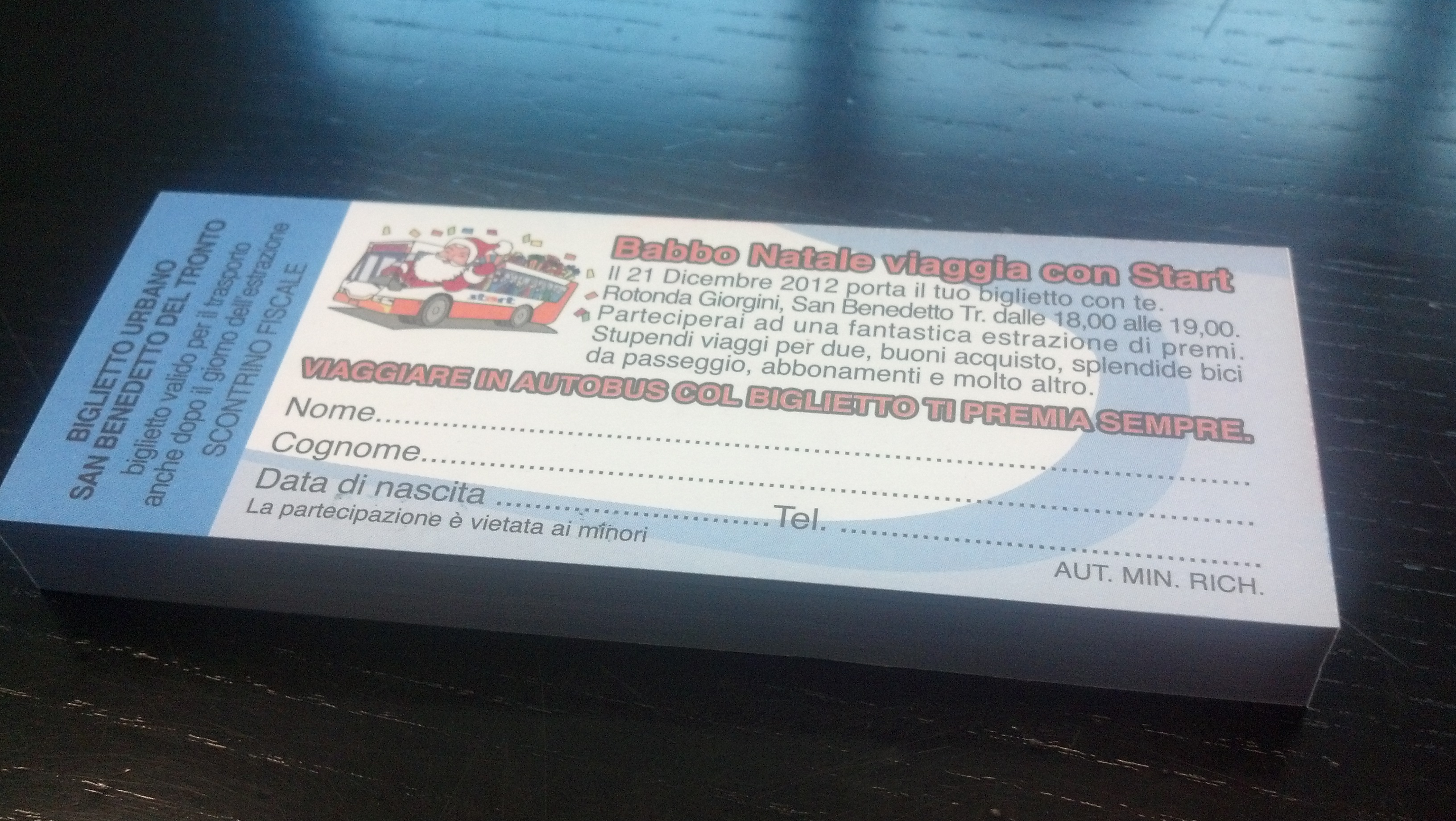 ASCOLI PICENO – Vai in pullman, e vinci un premio: originale e azzeccata iniziativa dell’azienda di trasporto pubblico Start Spa che per le feste di fine anno 2012 ha organizzato “ChristmaStart – Babbo Natale viaggia con Start“.