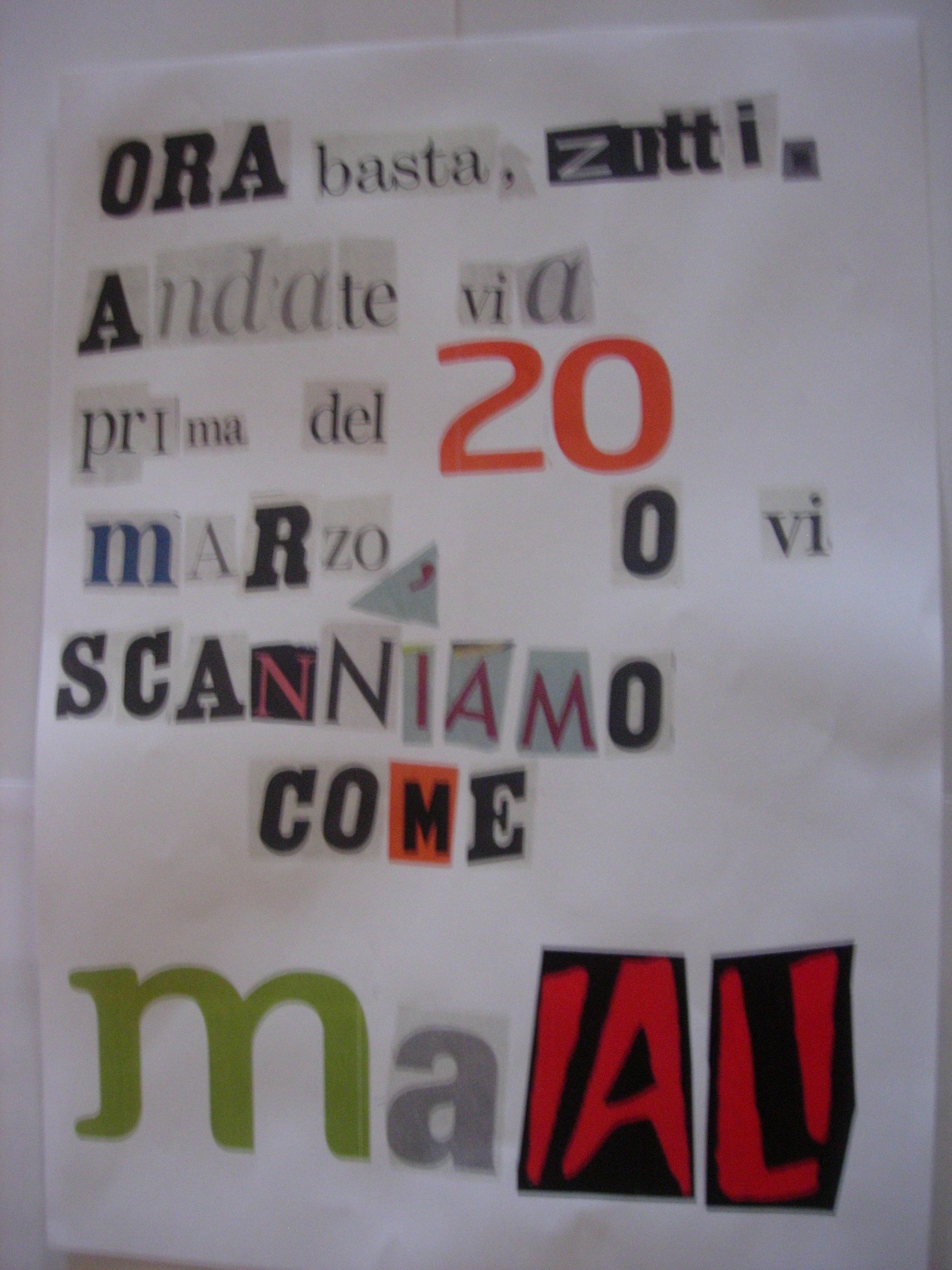 “Ora basta, zitti. Andate via prima del 20 marzo, o vi scanniamo come maiali”, è l’ultima pesantissima minaccia, ricevuta il 5 febbraio scorso da Ado Morelli, con una lettera anonima. “Abbiamo dei sospetti – chiosa Morelli-. Purtroppo, non abbiamo prove certe per fare dei nomi”.