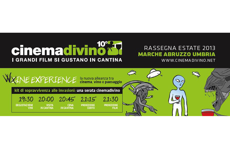 Nel corso di quest’estate 2013, fino al 1° di settembre, la provincia di Ascoli Piceno ospiterà diversi appuntamenti di Cinemadivino che, per il mese di giugno, saranno: il 23 alla cantina CiùCiù di Offida con il film Il principe abusivo e il 27 alla cantina Domodimonti a Montefiore dell’Aso con il film Vita di Pi. Inoltre quest’anno, le location saranno ancora più accoglienti grazie alla presenza di Cavò, innovativo portabottiglie a moduli da cui prende forma una cantina componibile: vero trend-setter per tutti gli amanti del mondo del vino.