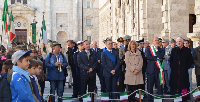 Erano anche presenti numerosi studenti di ogni ordine e grado accompagnati dai loro insegnanti e le associazioni combattentistiche e d’arma, tra cui il gruppo Alpini di Ascoli che celebrava i suoi 90 anni di fondazione. Prima della deposizione della corona, si è svolto il rito dell’alzabandiera e la lettura della preghiera per la patria da parte del cappellano militare del Reggimento Piceno. Quindi è stato letto il messaggio del Presidente della Repubblica alle Forze Armate e ha preso la parola il Prefetto che ha sottolineato “i principi fondamentali della Costituzione e l’omaggio a quanti sono caduti nel corso della Grande Guerra” ricordando anche i soldati caduti nelle missioni internazionali e gli avieri tragicamente scomparsi nell’incidente ai Tornado dello scorso agosto sui cieli di Ascoli.