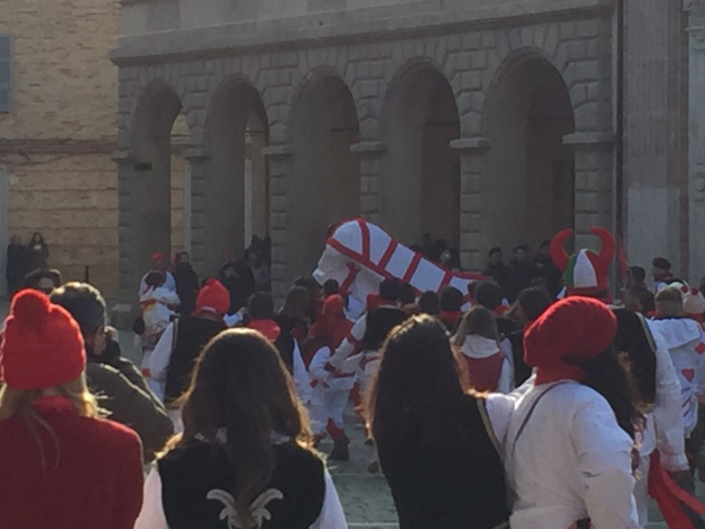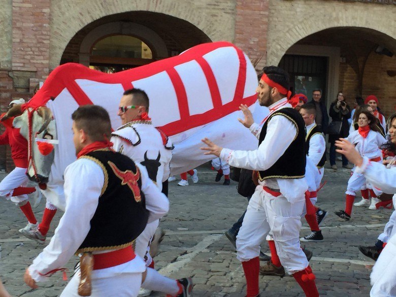 OFFIDA – A caratterizzare il Carnevale offidano è la manifestazione de “Lu Bov Fint”, consistente in una farsesca caccia ad un bue oggi finto, ieri vero.