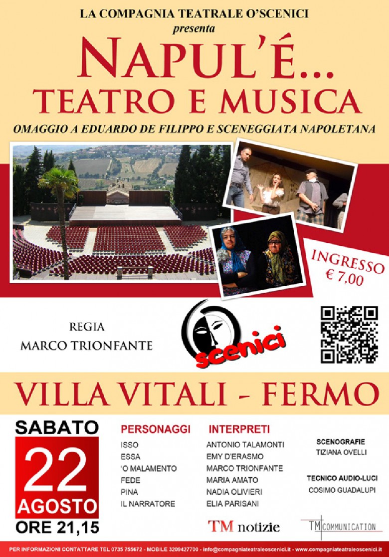 “Napul’è…teatro e musica” – Villa Vitali (Fermo) – sabato 22 agosto 2015 ore 21.15 ingresso € 7,00