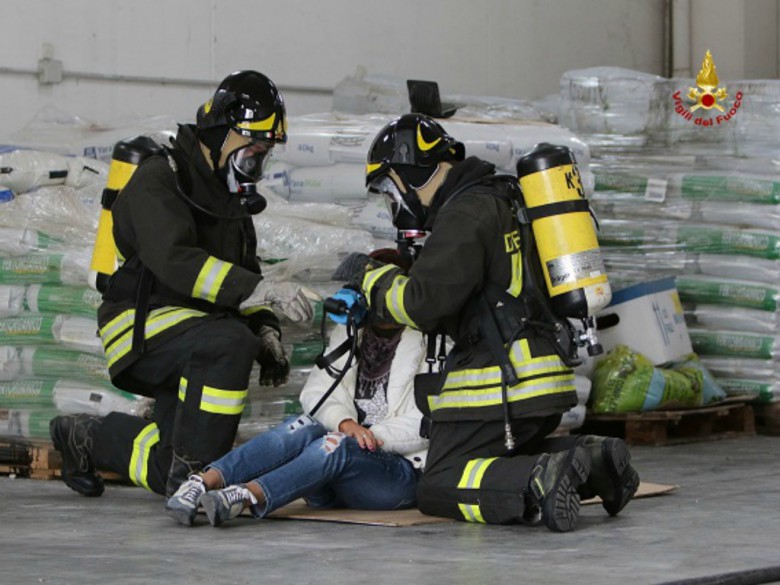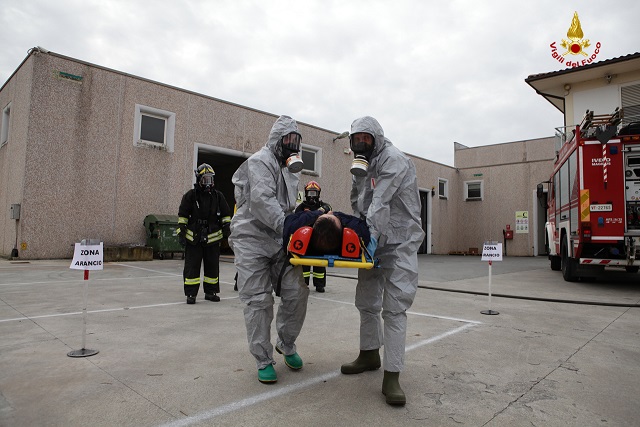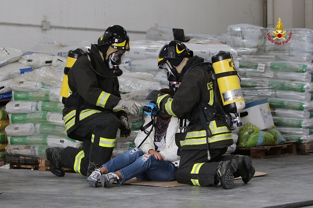In particolare è stato ipotizzato un grosso incendio nel deposito di stoccaggio fitofarmaci di una ditta, con formazione di una nube tossica diretta verso le zone abitate circostanti e con il coinvolgimento anche di due dipendenti feriti all’interno del magazzino.