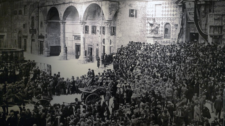 La mostra presenta una lettura di questo momento storico attraverso le testimonianze documentarie, pubblicistiche e fotografiche tramandate principalmente da due offidani: Defendente Vannicola militare combattente morto al fronte nel 1917 e Michele Angelini, impiegato civile con la passione della storia e del giornalismo.