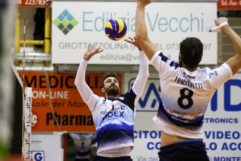 Inizio equilibrato nel primo set, ma il primo break è in favore di Reggio Emilia, che si porta avanti 7-9. Immediato il sorpasso Videx: con il muro di Tomassetti arriva l’11-9 per i padroni di casa, mentre l’allungo è opera di Nicolò Brandi, che gioca con le mani del muro ospite e firma il 14-11. Reggio accorcia le distanze (15-14, attacco out Cester) e si riporta a condurre sul 16-17, quindi inizia lo show dell’opposto Kody, che sul suo turno al servizio fa volare la Conad a +5 (17-22). Il muro di Cargioli regala il set point a Reggio Emilia (19-24), e gli ospiti chiudono alla prima occasione: 19-25.