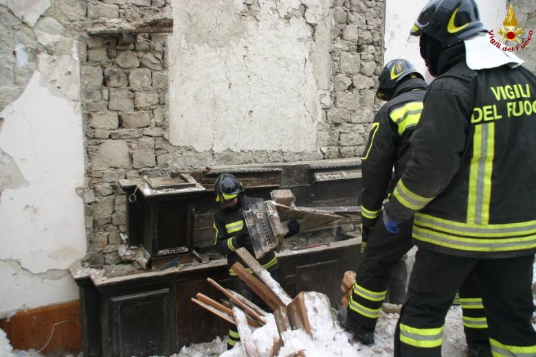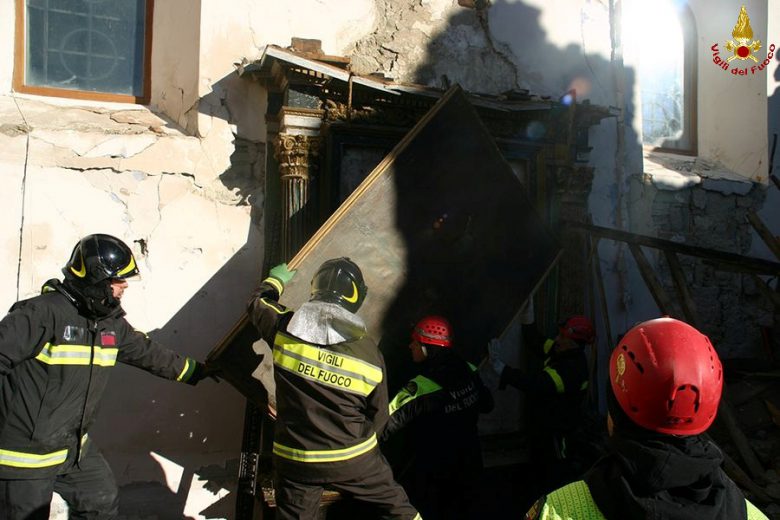 ARQUATA DEL TRONTO – Prosegue l’opera di recupero dei Vigili del fuoco delle opere d’arte dalla Chiesa parrocchiale della Santissima Annunziata ad Arquata del Tronto.