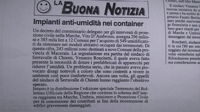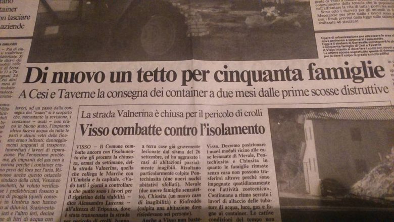 “Certamente, ma il metodo da seguire era quello, invece qui non si capisce più nulla. Allora il 30% delle abitazioni subì delle lesioni, stavolta a Pievetorina o Muccia siamo quasi al 100%. Bastavano piccoli accorgimenti, ad esempio ridurre il numero di progetti per ciascun professionista, cosa che a volte ritardava i lavori per una eccessiva concentrazione di compiti. Oggi ci stiamo adoperando per un’area con fiscalità agevolata, ci sono proposte che arrivano dalle università di Macerata e Camerino: questa fu una cosa che non riuscimmo ad ottenere nel 1997, spero venga accolta stavolta”.