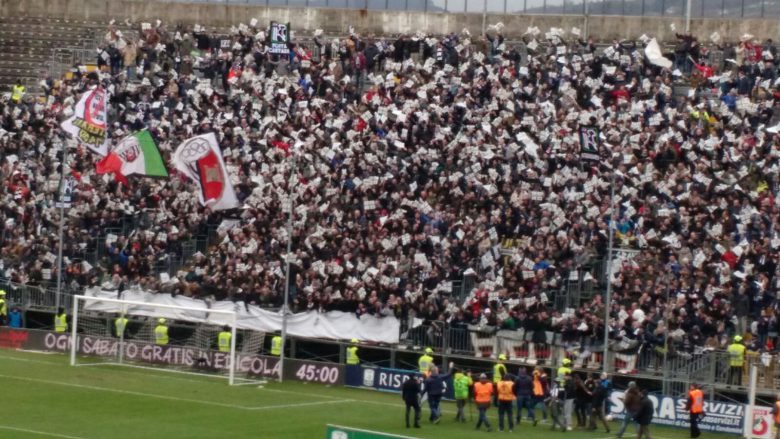 46′ Sull’angolo successivo, colpo di tacco di Favilli ma pare il portiere pisano. Termina 1 a 3 il primo tempo. Qualche fischio piove dagli spalti ma la Curva Sud incita calorosamente.