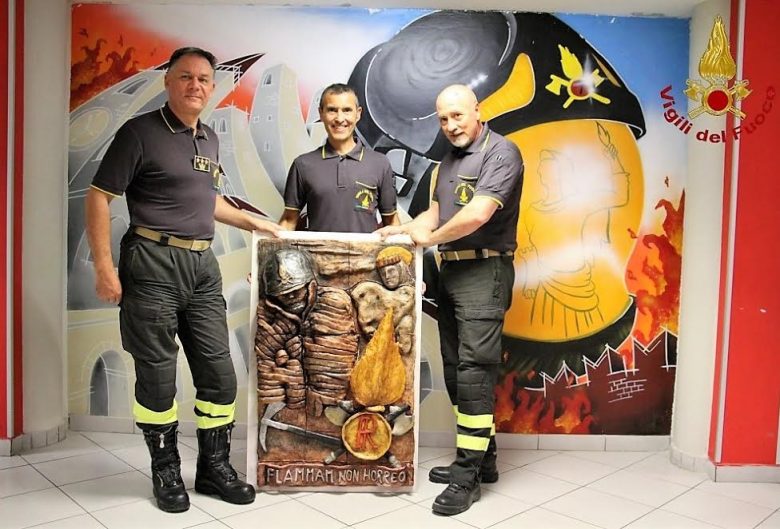 ASCOLI PICENO – Un gradito dono ai Vigili del Fuoco del Comando di Ascoli Piceno. Il capo reparto Angelo Melaranci ha voluto omaggiare i colleghi piceni con un altorilievo di gran pregio, plasmato in terra poi cotta in un forno a quasi mille gradi e successivamente lucidato a cera.