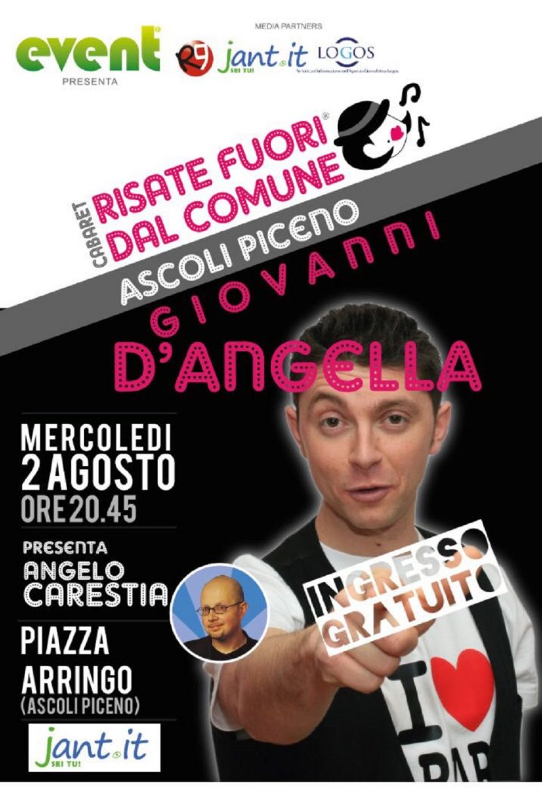 ASCOLI PICENO – Mercoledì 2 agosto terzo appuntamento dei quattro previsti con “Risate fuori dal comune”. Protagonista della serata, con inizio alle 20.45 e che si svolgerà ad Ascoli Piceno in piazza Arringo, sarà Giovanni D’Angella, comico che ha partecipato a diverse trasmissioni televisive sulle reti nazionali, come “Zelig” nel 2012/2013 e “Eccezionale veramente” su LA7 nel 2016.