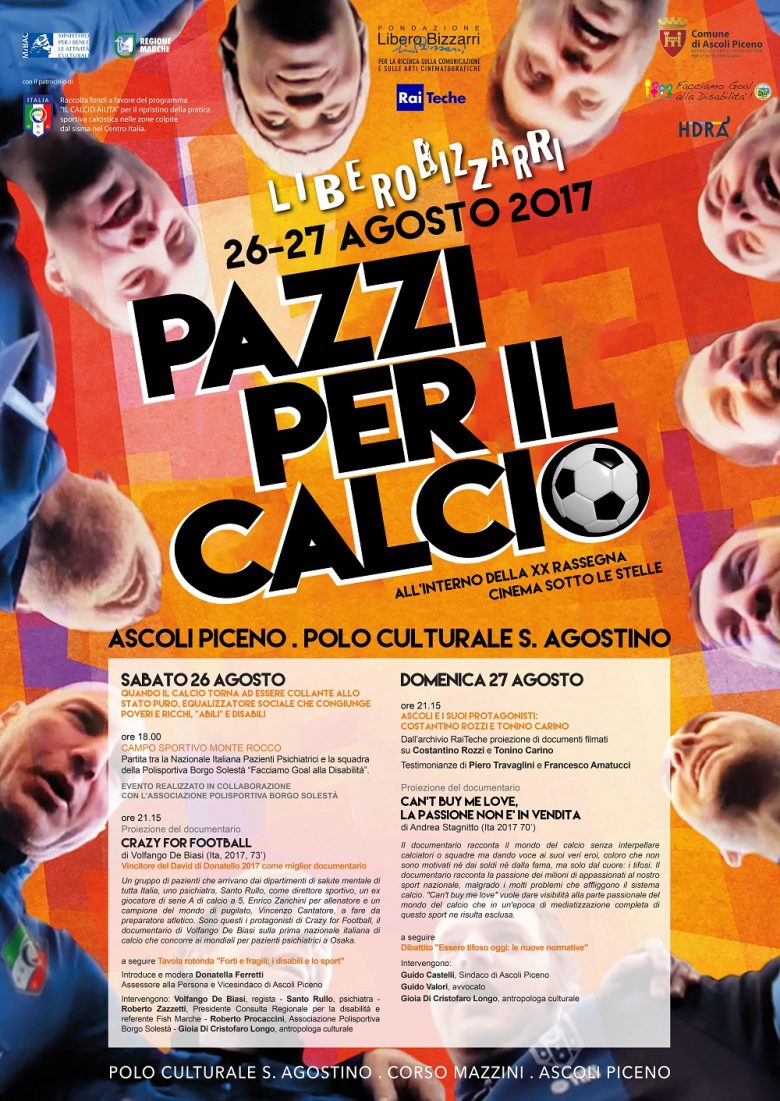 ASCOLI PICENO – Sabato 26 e domenica 27 agosto presso il Polo Culturale Sant’Agostino si svolgerà “Pazzi per il calcio”, con il pallone che torna ad essere collante allo stato puro, equalizzatore sociale che congiunge poveri e ricchi, “abili” e disabili.