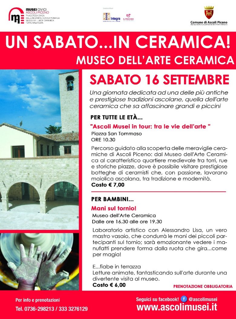 ASCOLI PICENO – Doppio appuntamento sabato 16 settembre, a partire dalle 10.30, per una giornata dedicata ad una delle più antiche e prestigiose tradizioni ascolane, quella dell’arte della ceramica che sa affascinare grandi e piccini.