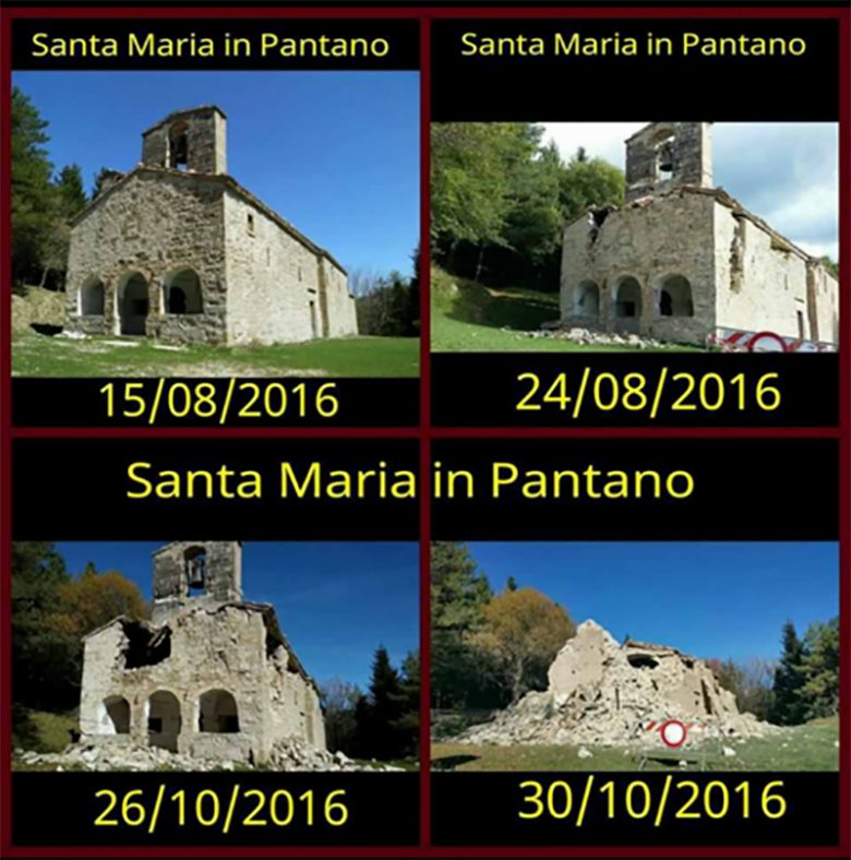 Perché la prima devastante scossa del 24 agosto 2016 ha gravemente lesionato la Chiesa, poi definitivamente crollata con il sisma del 30 ottobre: “Dopo il 24 agosto io e altri cittadini abbiamo sensibilizzato le istituzioni a mettere in sicurezza la chiesa, realizzando anche un video messo su YouTube. Ma nessuno ha mosso un dito. Ad esempio la pesante campana che era nel campanile non è stata rimossa così il 30 ottobre è caduta distruggendo il tetto. All’interno della chiesa vi erano degli affreschi risalenti al ‘600 e al ‘700 che raffiguravano le Sibille, e per questo Santa Maria in Pantano era conosciuta come la chiesa delle Sibille. Tutto distrutto, probabilmente irrecuperabile per sempre”.