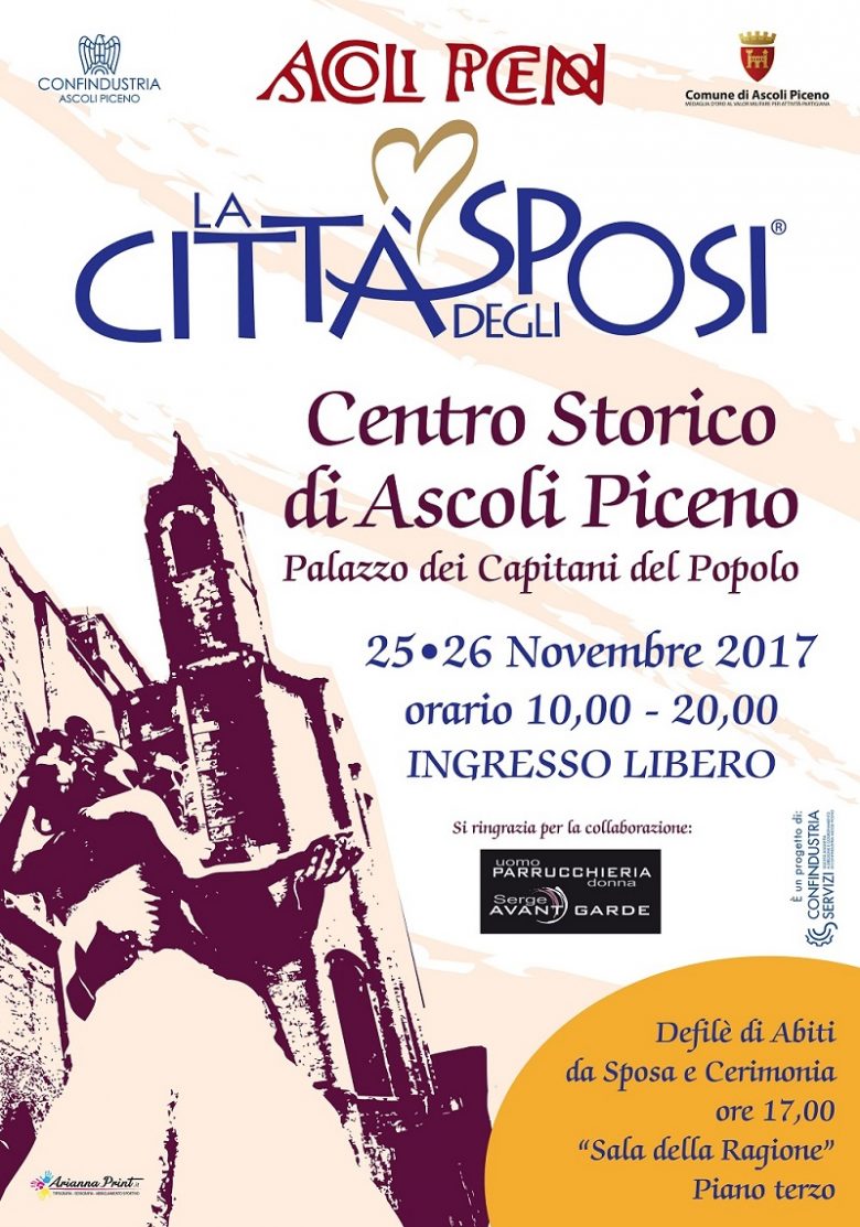 ASCOLI PICENO – Sabato 25 e domenica 26 novembre torna “La città della sposa” presso Palazzo dei Capitani ad Ascoli Piceno, visitabile dalle ore 10 alle 20.