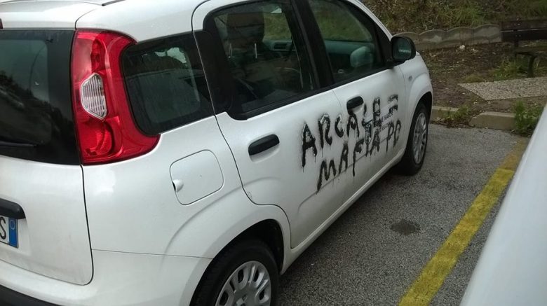 FERMO – Questa mattina, 29 dicembre, sono state trovate imbrattate le autovetture del servizio decentrato Agricoltura della Regione Marche, nella sede della provincia di Fermo. Scritte nere che con le parole “Sae? CAS? Arcale=Mafia Pd”.