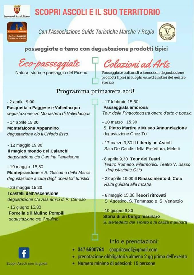 ASCOLI PICENO – Continuano gli appuntamenti tra arte e tradizioni, organizzati da Scopri Ascoli con la guida e VianDante Viaggi, per il prossimo fine settimana nel territorio di Ascoli. La stagione turistica di Marzo torna con nuovi interessanti iniziative
