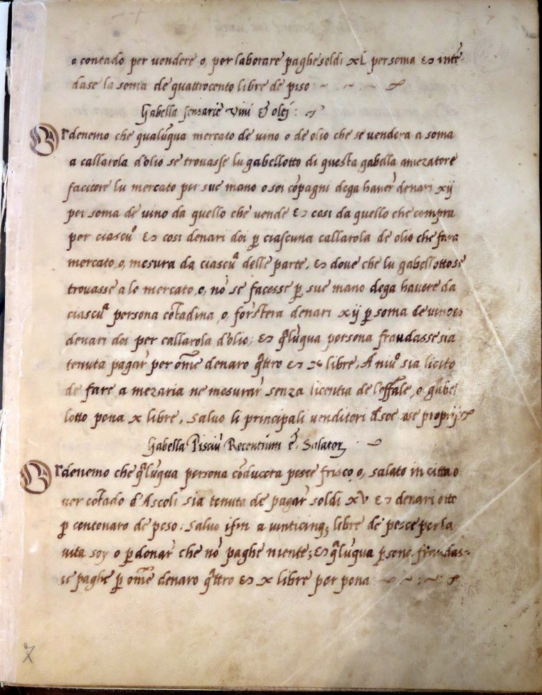 Oggetto della tesi è un documento dell’Archivio Storico del Comune di Ascoli, depositato presso l’Archivio di Stato, costituito da un volume pergamenaceo del 1413, contenente i capitoli che regolavano la riscossione delle gabelle per la circolazione delle merci in città. Il documento, trascritto integralmente, offre una delle pochissime testimonianze ascolane in lingua volgare pervenute del sec. XV.