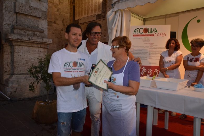 Alla fine, dopo una preparazione e farcitura delle olive ripiene all’ascolana avvenuta “live” in piazza Arringo, davanti ai moltissimi spettatori, la giuria (composta oltreché dallo stesso Mariani anche dallo chef Zunica e da Valenti, Falcioni, Marcelli e Girardi) ha decretato la vincitrice, Carla Nepi, cui è stata assegnata la targa di Ascoliva per la più buona oliva ripiena fatta in casa.