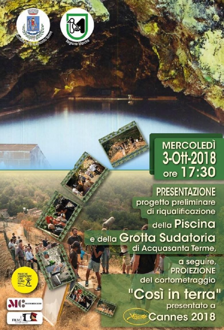 Dopo la presentazione ci sarà la proiezione di “Così in terra”, cortometraggio di Pier Lorenzo Pisano presentato al Festival di Cannes 2018 ed interamente girato nelle zone del sisma nelle frazioni di Acquasanta: Quintodecimo, Tallacano, San Vito, Cascate di Forcella-Mulino Pompili.