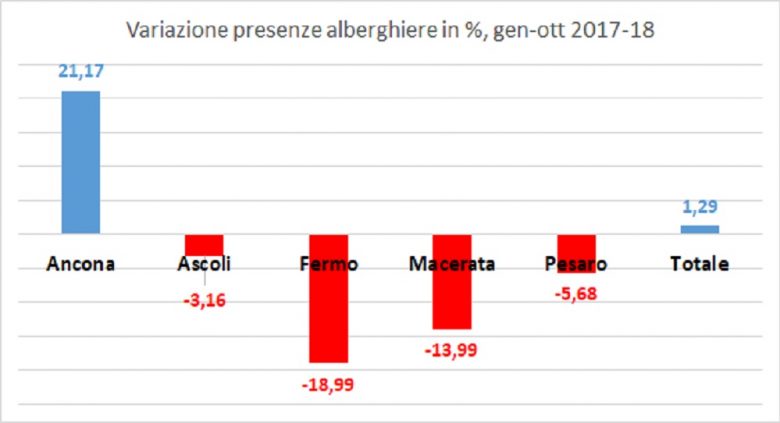 Ma se poi si vanno a vedere i dati regionali suddivisi per provincia, il quadro diventa ancora più complicato da decifrare. Praticamente soltanto la provincia di Ancona mostra segnali positivi, sia per quel che riguarda il settore alberghiero che quello extralberghiero, con crescite a doppia cifra e anche superiori al 20%.