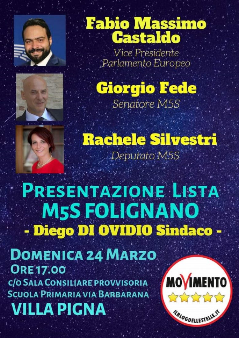Ci saranno anche il Vice Presidente del Parlamento Europeo Fabio Massimo Castaldo, il Senatore Giorgio Fede e la Deputata Rachele Silvestri.