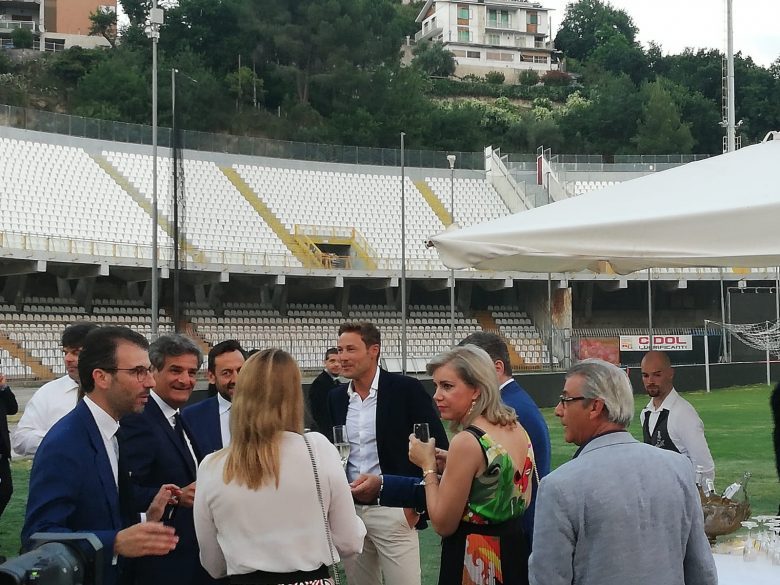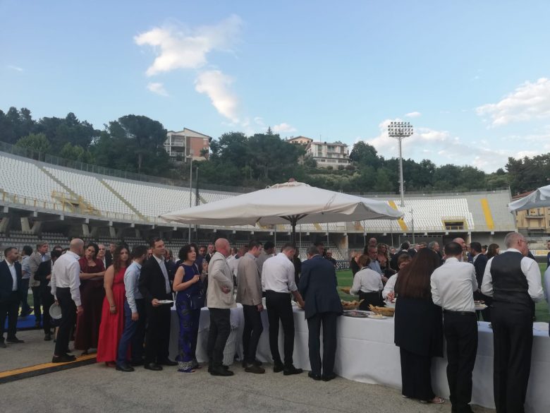 ASCOLI PICENO – Una serata ricca di sorprese quella organizzata dal patron dell’Ascoli Calcio, Massimo Pulcinelli, che ha voluto regalare ai suoi dipendenti e affiliati una cena di gala in grande stile. Inizio della serata con buffet e tanti ospiti, sia della società bianconera a partire dal presidente Tosti ma anche il sindaco Marco Fioravanti, Nico Stallone, Massimiliano Ossini che hanno preso parte all’evento. Poi cena sul prato del Del Duca con Pulcinelli che ha ringraziato Ascoli con un video dedicato alla sua prima stagione alla guida del club e uno dedicato a Bricofer. A seguire una serie di premiazioni ai dipendenti e poi finale col botto con lo spettacolo di Teo Mammuccari ad allietare la serata.