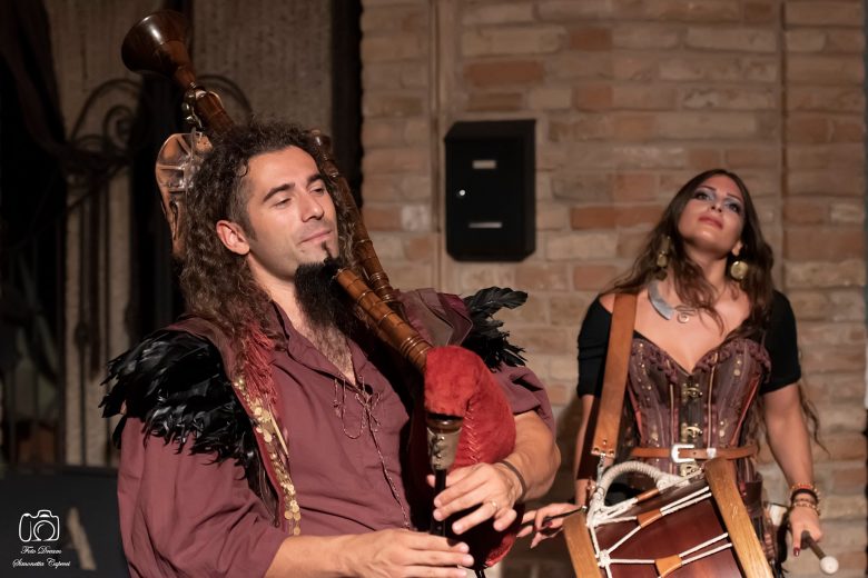I Sonagli di Tagatam, per la prima volta a Templaria fino al 19, sono un’intera famiglia di musicisti di straordinaria qualità espressiva che col loro ritmo travolgente stanno incantando tutti. Poi c’è Davis che suona nei Giullari di Spade ed è figlio di Davide Rossi che 2 teatri più in là, lancia coltelli intorno alla figura di sua moglie e avvolge serpenti intorno alle figlie. All’Orto della Madonna ci sono Claudia e Pablo i Sonambulos che quest’anno sono tornati ad incantare i bambini portando anche il loro che ancora non ha un anno.