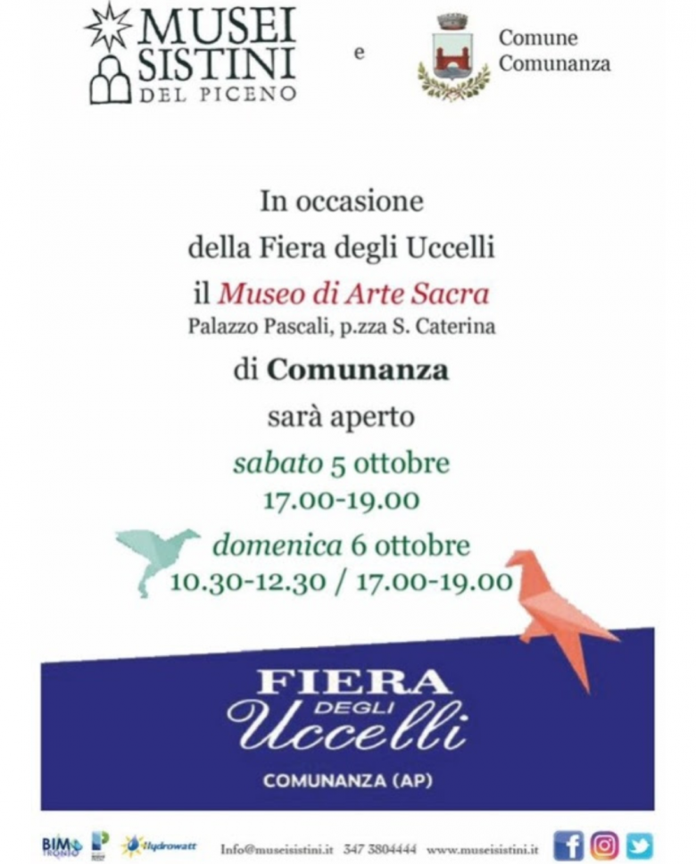 COMUNANZA – In occasione della Fiera degli Uccelli, il Museo di Arte Sacra di Comunanza sarà aperto sabato 5 e domenica 6 ottobre.