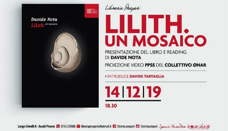 ASCOLI PICENO – Ultimo incontro per il 2019 alla Libreria Prosperi sabato 14 dicembre con la presentazione/reading del romanzo sperimentale Lilith. Un mosaico del poeta e scrittore Davide Nota, pubblicato per i tipi di Luca Sossella Editore.