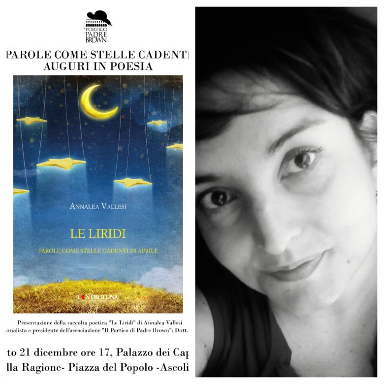 Una prima presentazione del libro avverrà nella città di Ascoli Piceno, sabato 21 dicembre dalle ore 17 alle 18,30 presso la Sala della Ragione di Palazzo dei Capitani in Piazza del Popolo e l’autrice Annalea Vallesi sarà lieta di incontrare amici e non, amanti della poesia così come semplici curiosi che vorranno interagire ed intraprendere anche un dibattito.confronto sul significato della poesia e della vita. Modera l’incontro la giornalista Pina Traini. Voci recitanti: Maria Grazia Isolini e Rossana Polci. Auguri in musica: Giovanni Vitelli.