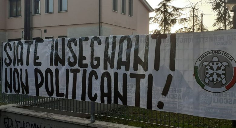 ASCOLI PICENO – Di seguito una notta di Articolo Uno di Ascoli in merito ad uno striscione di Casapound apparso lunedì 23 dicembre di fronte alle scuole elementari di Marino del Tronto.