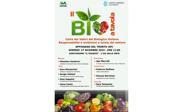 ASCOLI PICENO – “La Carta dei valori del biologico italiano. Responsabilità e ambizioni a tutela del settore” sarà il tema al centro dell’incontro in programma il 27 dicembre a partire dalle 11 all’agriturismo Il Gigante in contrada Valle Orta ad Appignano del Tronto.
