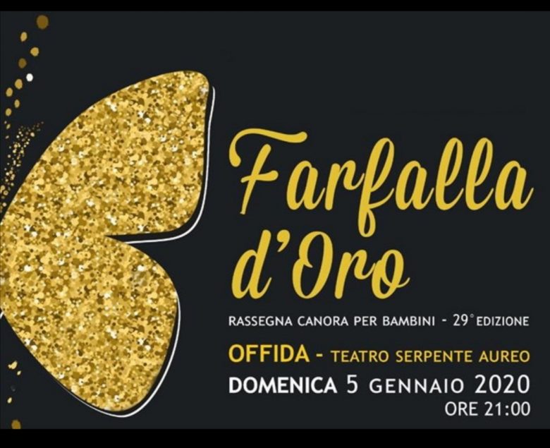 OFFIDA – Tutto pronto per la nuova edizione de la Farfalla d’Oro, la rassegna canora per bambini, che si svolgerà al Serpente Aureo il prossimo 5 gennaio, alle ore 21.
