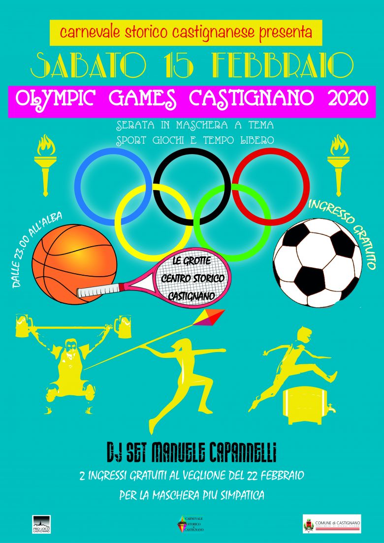 È infatti tempo di tirare fuori travestimenti e costumi, perché sarà la volta del Veglione in Maschera a tema presso i locali del centro storico, sottostanti Piazza San Pietro, denominati “le grotte”. Il titolo della serata sarà “Olympic Games Castignano 2020” richiamando ai giochi olimpici in programma proprio quest’anno a Tokio, seppur rivisitati alla castignanese ed in clima carnevalesco. Il tema di questa edizione sarà quindi “sport”, olimpici e non, praticati oppure seguiti, reali ma soprattutto rivisitati ed inventati. Insomma, spazio alla fantasia e all’inventiva: basterà indossare un vestito o accessori a tema, e partecipare a questo stravagante party, che come sempre si annuncia affollatissimo e molto apprezzato, per l’originalità dei temi sempre diversi, per la location unica e suggestiva, per il clima gioioso ed accogliente creato dai Castignanesi, così legati alla tradizione e alla festa carnevalesca.