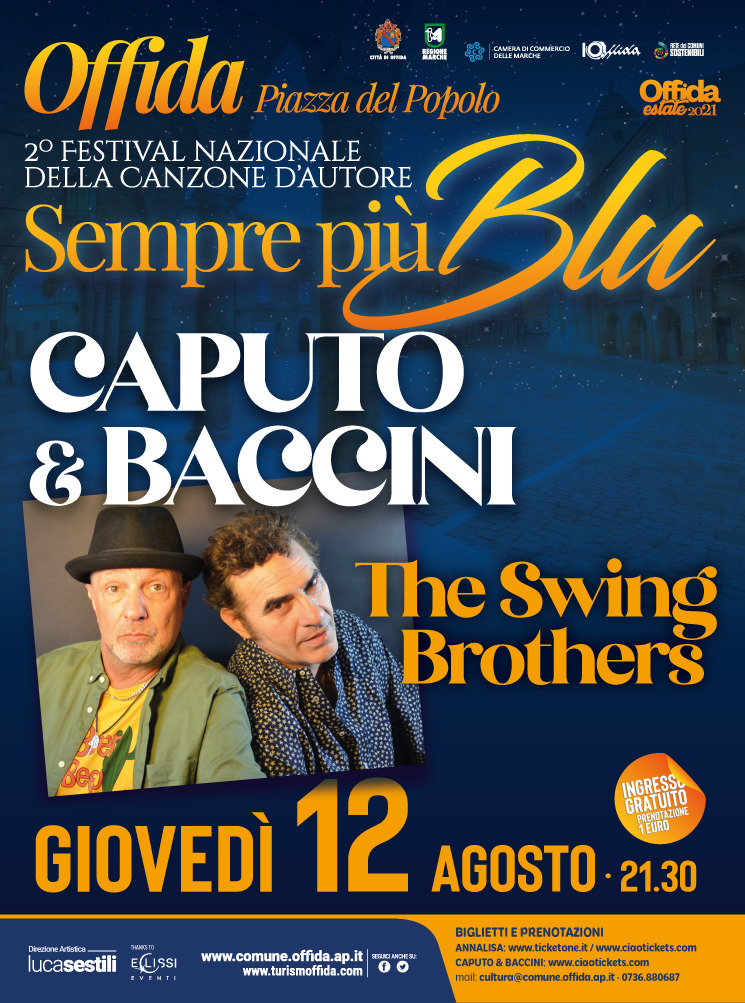 OFFIDA – Lo swing di Caputo e Baccini in Piazza del Popolo ad Offida. I due musicisti si esibiranno, in un concerto gratuito, il prossimo 12 agosto alle ore 21:30.