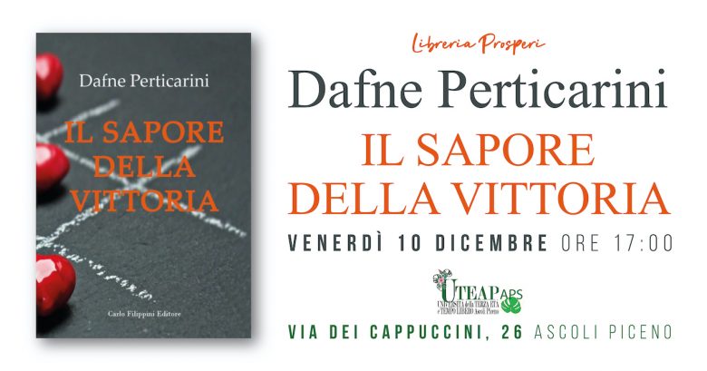 ASCOLI PICENO – Venerdì 10 dicembre alle ore 17 la scrittrice Dafne Perticarini presenterà il libro “Il sapore della vittoria”, pubblicato da Carlo Filippini Editore. L’evento è realizzato dalla Libreria Prosperi in collaborazione con Uteap aps e si svolgerà nella sede dell’Università in via dei Cappuccini, 26 ad Ascoli Piceno.