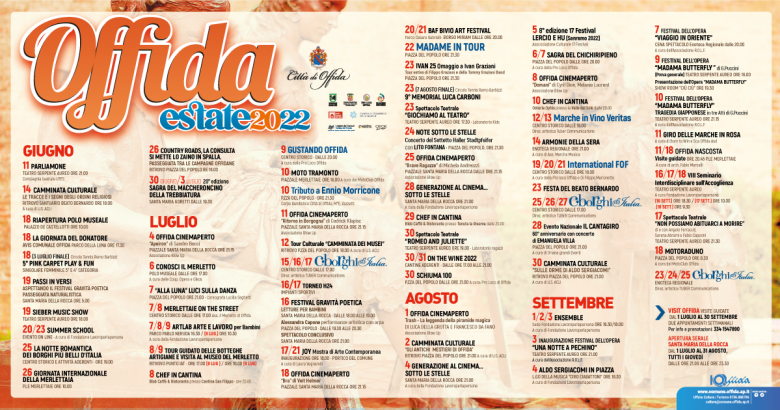“Il calendario mette insieme numerose iniziative per tutti. per un’estate di qualità – conclude il Sindaco Luigi Massa – Rinnoviamo così la nostra grande tradizione legata all’accoglienza. Offida vi aspetta”.