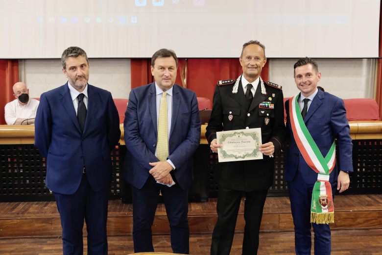 ASCOLI PICENO – Martedì pomeriggio, 29 giugno, presso la Sala della Ragione di palazzo dei Capitani ad Ascoli, ad apertura del consiglio comunale, si è svolta la cerimonia di conferimento della cittadinanza onoraria al Generale di Corpo d’Armata Adolfo Fischione, “quale riconoscimento e gratitudine per il prezioso e costante contributo profuso nell’affermare con competenza ed autorevolezza i principi della legalità e della giustizia, per il suo impegno attivo e costante a contrastare la criminalità organizzata e per il rispetto dei valori di convivenza civile, nonché per il forte attaccamento e senso di appartenenza alla Città di Ascoli”.