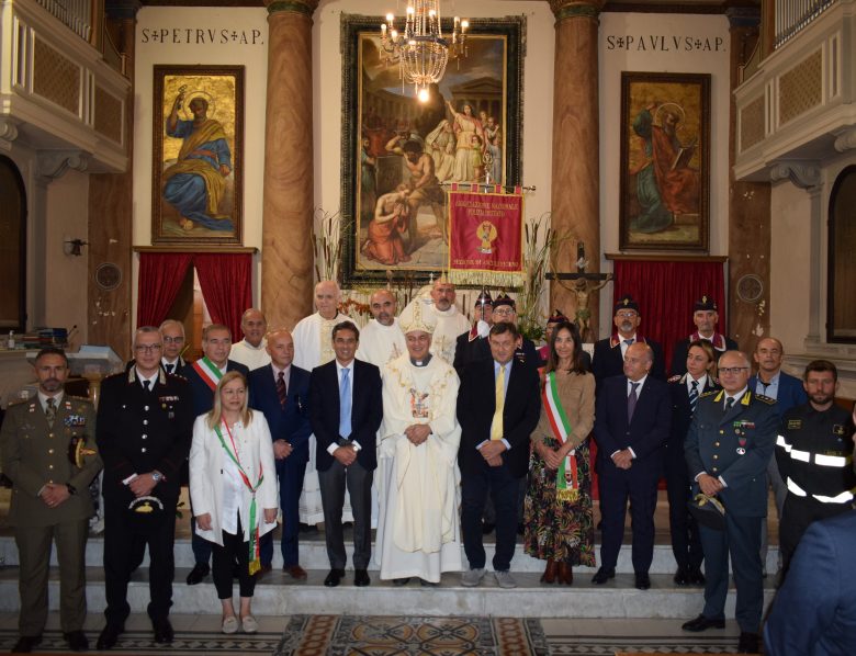 COLLI DEL TRONTO – È stata celebrata questa mattina alle ore 12 dall’Arcivescovo S.E. Rev.ma Mons. Gianpiero PALMIERI presso la Chiesa di S. Felicita di Colli del Tronto, la funzione religiosa in occasione della ricorrenza della festività di San Michele Arcangelo, Patrono della Polizia di Stato. Alla Santa Messa hanno partecipato il Prefetto di Ascoli Piceno Dott. Carlo De Rogatis, il Questore di Ascoli Piceno Dott. Vincenzo Modeo, il Procuratore Capo della Repubblica Dott. Umberto Monti, il Sindaco di San Benedetto del Tronto Dott. Antonio Spazzafumo, l’assessore Dott.ssa Donatella Ferretti del Comune di Ascoli Piceno, l’assessore del Comune di Colli del Tronto Dott.ssa Lucia Cori, il presidente della CCIAA Dott. Gino Sabatini, il comandante del 235° reggimento Col. Marcello Di Mauro, il Ten. Col. Dell’Arma dei Carabinieri Pompeo Quagliozzi, il Dirigente dell’Ufficio Scolastico Provinciale Dott.ssa Francesca Romallo, il comandante della Capitaneria di Porto C.F. Alessandra Di Maglio, il comandante del gruppo Carabinieri Forestali Ten. Col. Giovanni Luzi, il comandante del gruppo della Guardia di Finanza Ten. Col. Vincenzo Tartaglia , il presidente dell’Ordine degli Avvocati Dott. Tommaso Pietropaolo, i comandanti della Polizia Locale di Ascoli Piceno e San Benedetto del Tronto, l’ingegner Vannarelli del Corpo dei Vigili del Fuoco, i familiari delle vittime del dovere, i rappresentati delle associazioni ANPS, ASSOARMA, ANPI oltre a personale della Polizia di Stato in servizio ed in quiescenza e dell’Amministrazione Civile dell’Interno, con le rispettive famiglie.