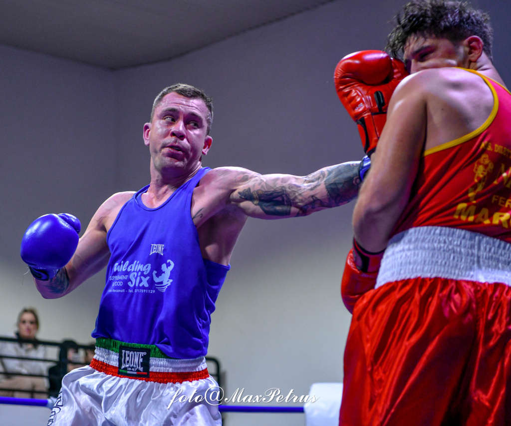 Match pari anche tra i 71 kg. Nicola Pagliarini della Nike Fermo e Giovanni Polverari dell’Audax Boxe Fano. Tre round combattuti ad alta tensione dove l’atleta fanese probabilmente meritava di più per aver sfoggiato un’insolita abilità offensiva e maggiore precisione rispetto all’avversario.